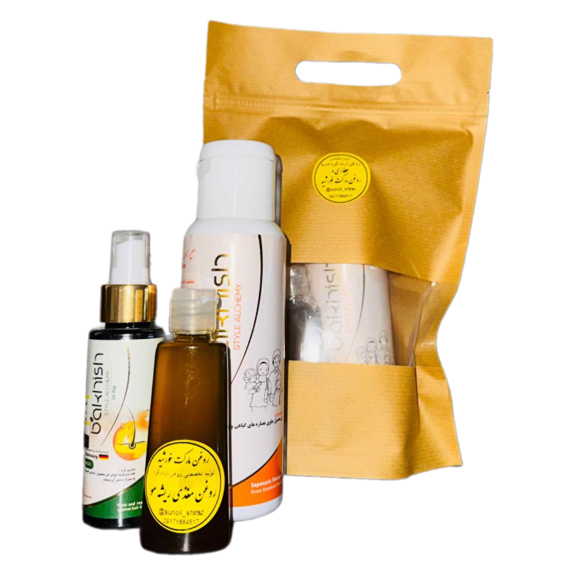این پکیج شامل ۳ محصول موثر در رفع ریزش مو ، رویش مجدد مو ، تقویت مو ، پرپشتی و ضخیم شدن مو ، رفع التهاب و خشکی سر و جلوگیری از سفید شدن مو می باشد .